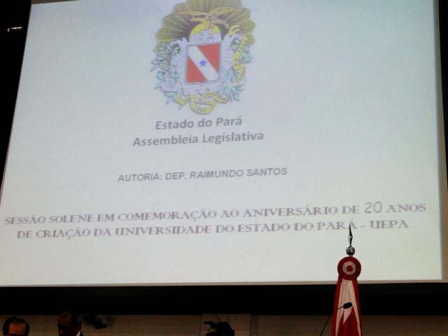 Para comemorar os vinte anos da Universidade do Estado do Pará, o deputado Raimundo Santos presidiu nesta segunda-feira (10/06) uma sessão solene em homenagem à instituição. O requerimento para a realização da sessão, de autoria do deputado, foi aprovado por unanimidade no plenário da Alepa.