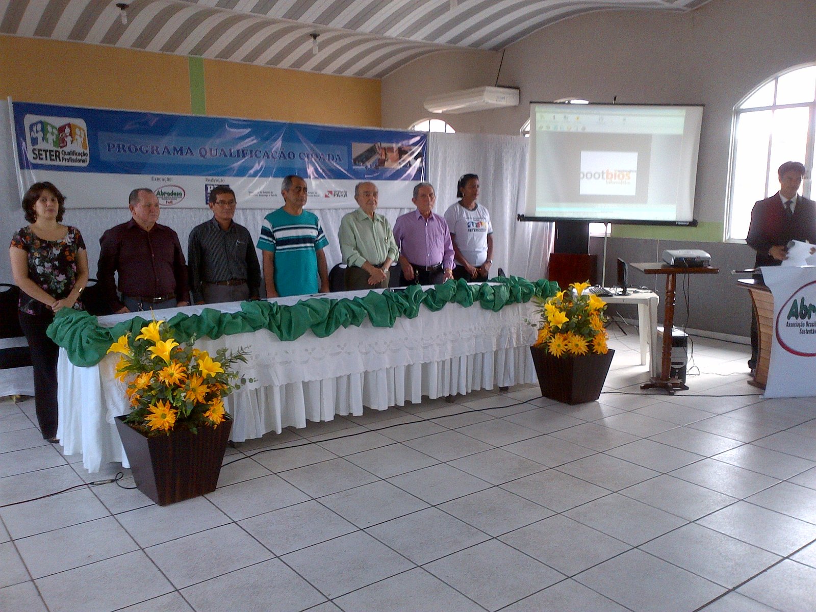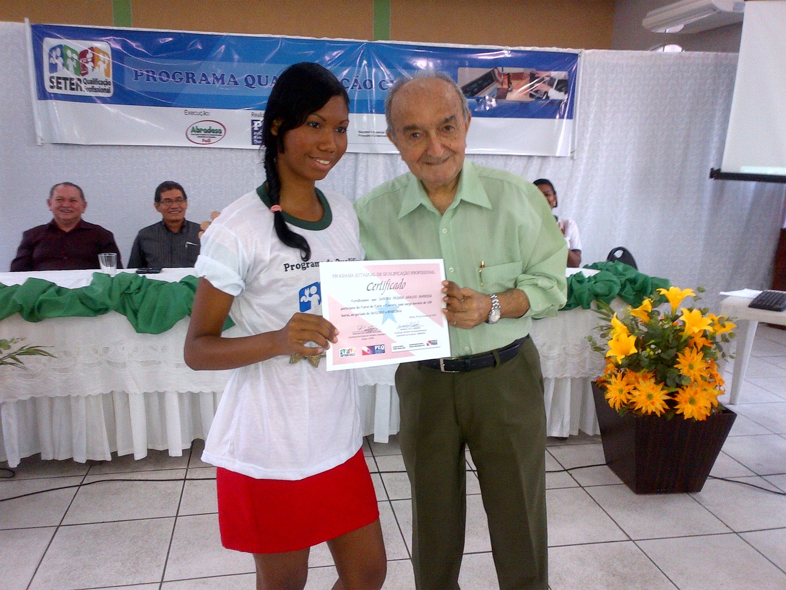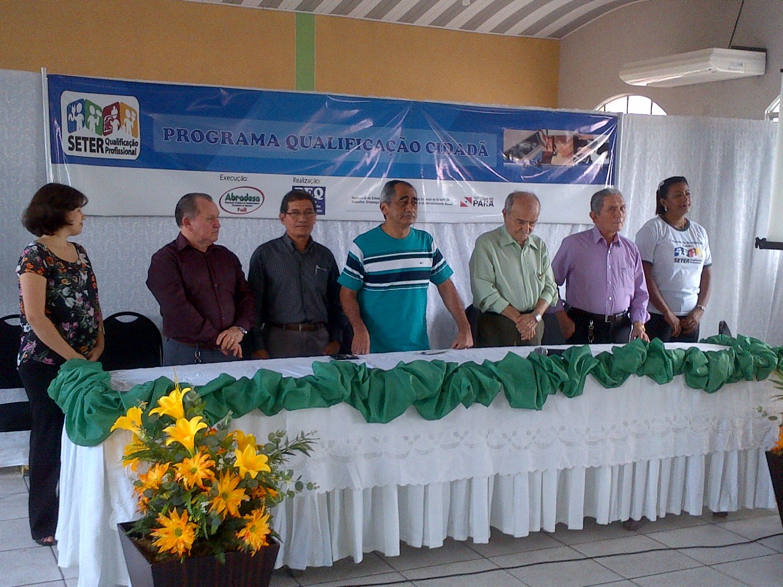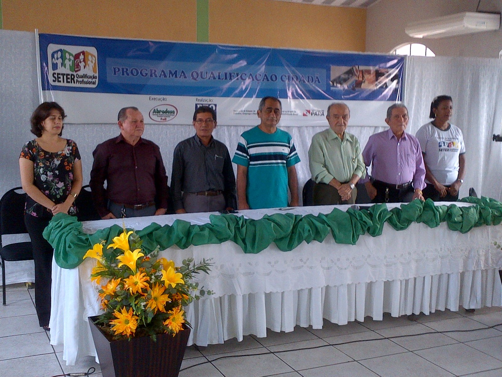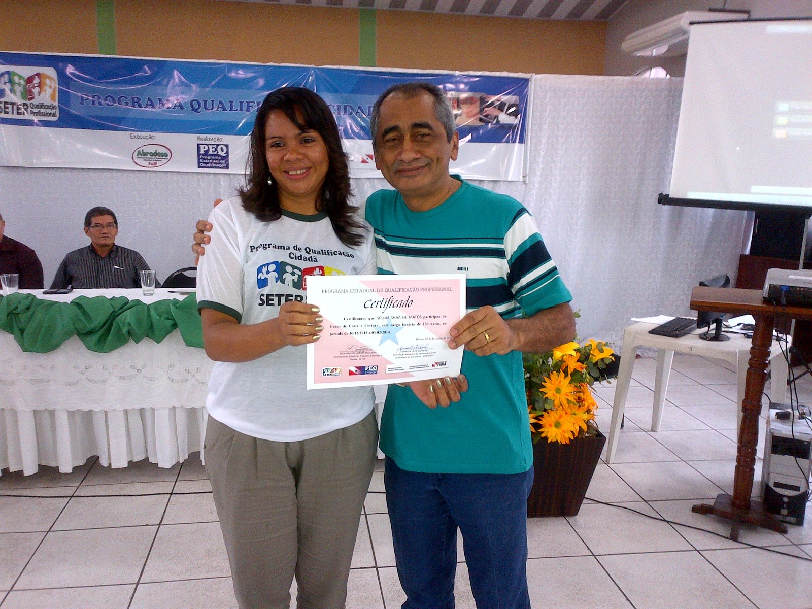 Dezenas de pessoas participaram, ontem, no município de Ananindeua, da cerimonia de entrega de diplomas do Programa de Qualificação para os formandos nos cursos de corte e costura, auxiliar administrativo e operador de caixa. A parceria entre Governo do Estado, Secretaria de Estado de Trabalho, Emprego e Renda (SETER), Associação de Desenvolvimento Sustentável da Amazônia (ABRADESA), viabilizada pelo deputado Raimundo Santos, proporcionou a geração efetiva de emprego e renda para dezenas de famílias no município.