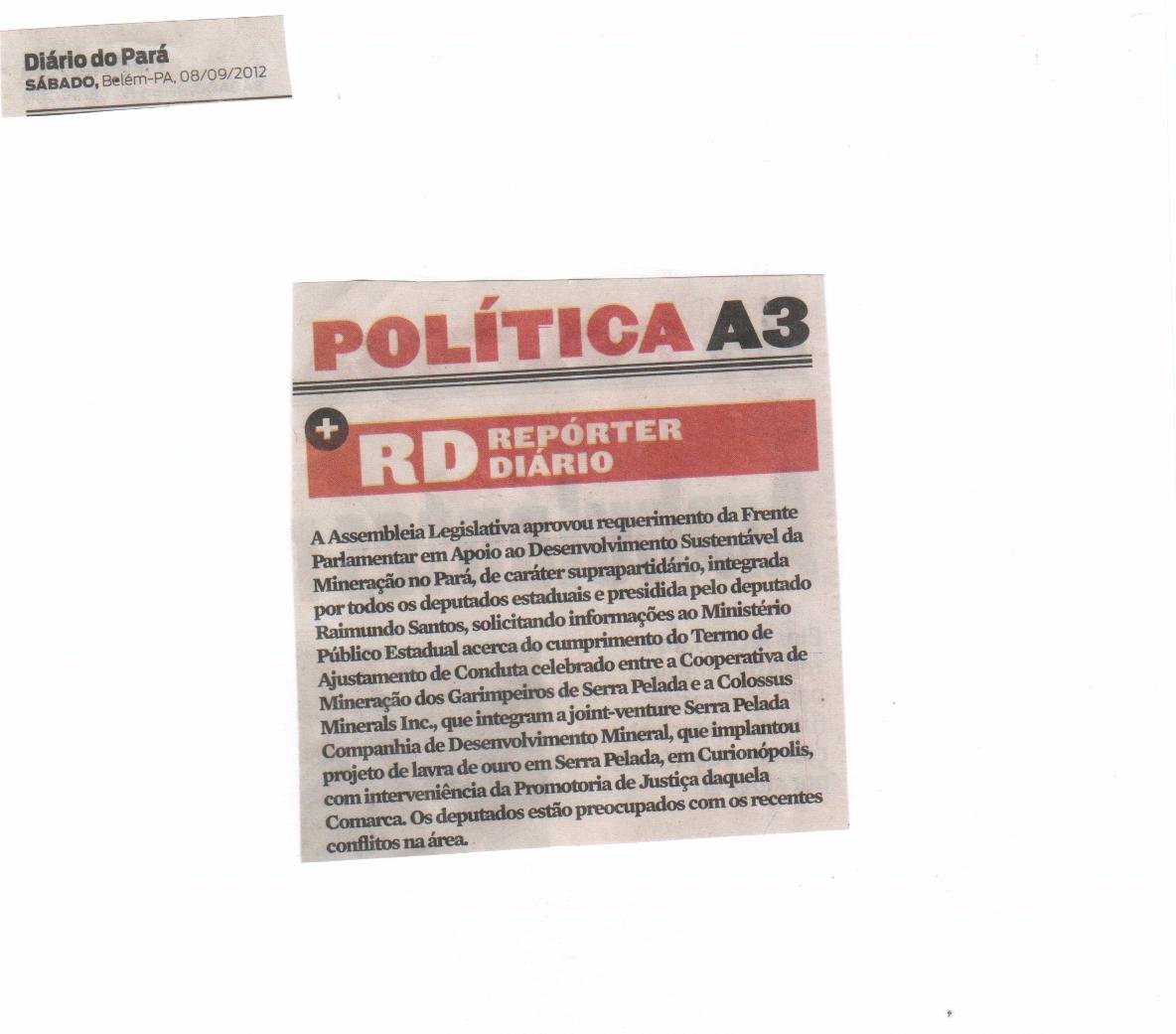 Início/Imprensa/Assembleia Legislativa aprova requerimento da Frente Parlamentar em Apoio ao Desenvolvimento Sustentável da Mineração no Estado do Pará Imprensa Assembleia Legislativa aprova requerimento da Frente Parlamentar em Apoio ao Desenvolvimento Sustentável da Mineração no Estado do Pará 28 de setembro de 2012Última Atualização 28 de setembro de 20120 25 Menos de um minuto 28 de setembro de 2012Última Atualização 28 de setembro de 20120 25 Menos de um minuto Compartilhar Facebook X Linkedin Skype WhatsApp Telegram Compartilhar via e-mail Imprimir