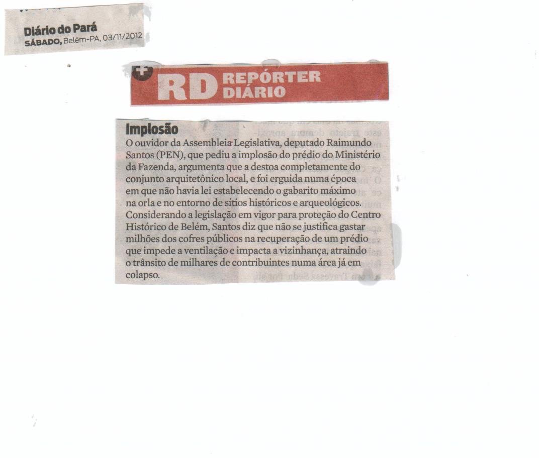 Início/Imprensa/Ouvidor da Assembleia Legislativa pede a implosão do prédio do Ministério da fazenda Imprensa Ouvidor da Assembleia Legislativa pede a implosão do prédio do Ministério da fazenda 14 de novembro de 2012Última Atualização 14 de novembro de 20120 32 Menos de um minuto 14 de novembro de 2012Última Atualização 14 de novembro de 20120 32 Menos de um minuto Compartilhar Facebook X Linkedin Skype WhatsApp Telegram Compartilhar via e-mail Imprimir